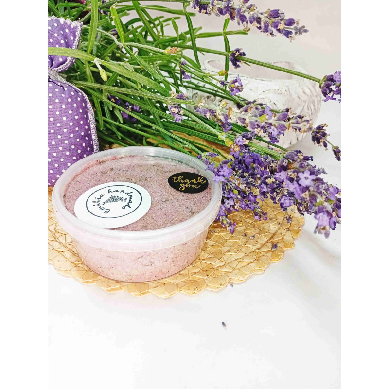 Složení: himalájská sůl, levandulový prášek, levandulový květ, levandulový éterický olej.