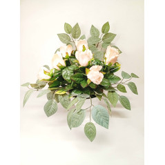 Naše kompozice růží kombinuje jemné květy a listy do harmonického celku. Každý květ je pečlivě zpracován, aby působil co nejpřirozeněji. Plastový květináč zajišťuje stabilitu celé kompozice a možnost volby jeho výšky umožňuje přizpůsobit aranžmá konkrétnímu prostředí.