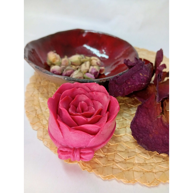 Naše ručně vyráběná mýdlová růže s mašlí okouzli Vás krásou a vůní, mýdlová růže s mašlí přináší nejen estetickou krásu, ale i osvěžující vůni do vašeho každodenního života. Elegantní mýdlo ve tvaru růže je dokonalým spojením krasy a péče. Tyto jedinečné mýdlové kousky jsou dostupné v široké škále barevných odstínů a lze je obohatit o různé éterické oleje, které podtrhnou jejich přírodní vlastnosti a aromaterapeutické účinky.