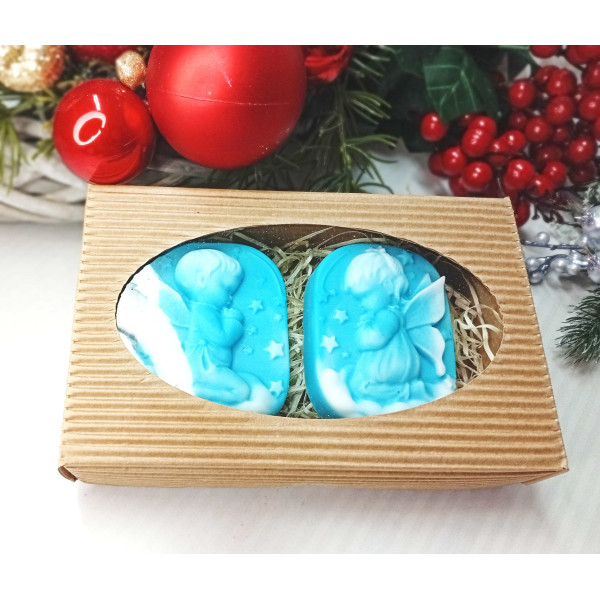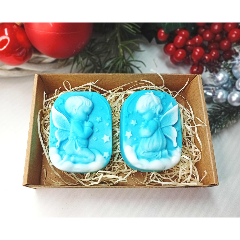 Ručně vyráběná Dárková kazeta mýdlo - Andílci obsahuje dvě voňavá mýdla ve tvaru andílka holky a kluka. Každý kousek je originál z kvalitních surovin, s výběrem barev a vůní. Ideální jako dárek k Vánocům, Valentýnu či narozeninám. Elegantní, voňavé a s láskou vyrobené v Česku.