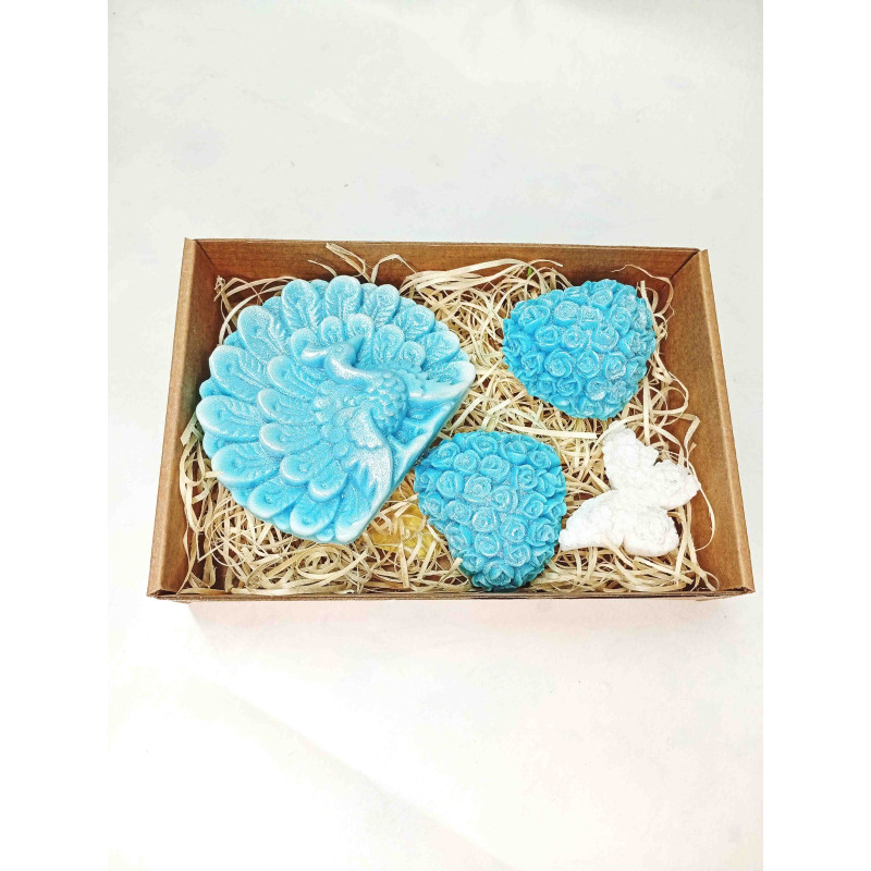 Střední kazeta páv, srdíčko, motýlek je romantický voňavý dárek. Ručně vyráběná mýdla nabízíme v různých barvách a vůních s možností dárkové krabičky i vlastních kombinací na přání. Ideální pro Valentýn, narozeniny, výročí nebo jen tak z lásky.